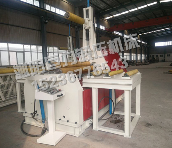 該四輥卷板機與對稱三輥卷板機比較,它可以不借助其它設(shè)備模具,直接予彎板材端部,而且剩余直邊較??;它可以不使板材調(diào)頭,而卷成工件。